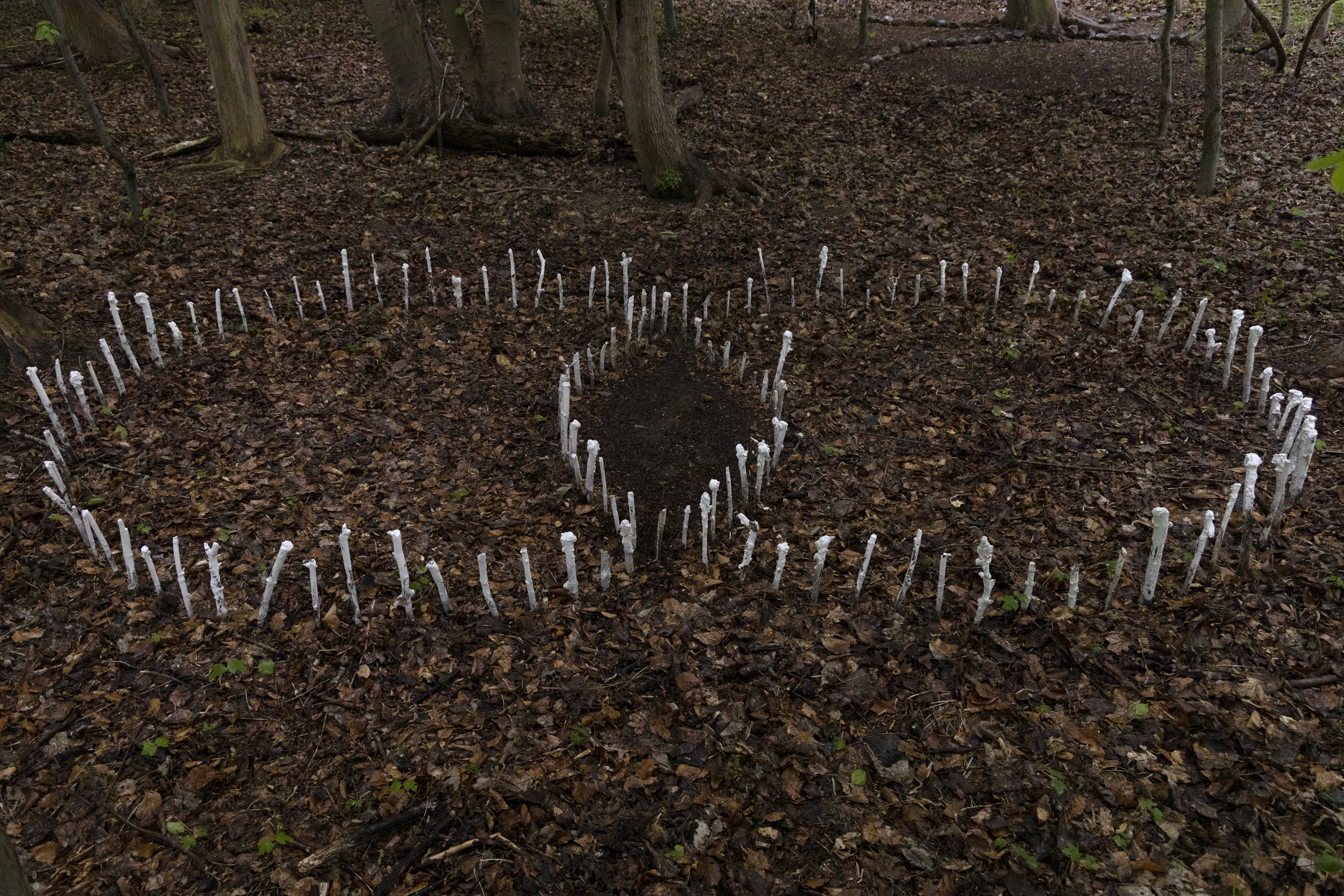 Art. Nature. Ritual. is a community exhibition that unfolds in natural surroundings at Alléhuset in the forest in Rude. The exhibition was created in an exchange between the specific place, the forest, and five artists, all of whom are inspired in their own way by nature and ritual. The participating artists are Cecilia Westerberg, Mette Borup Kristensen, Morten Plesner, Nana Francisca Schottländer and Regitze Engelsborg Karlsen, who since the beginning of May have met in the forest and performed rituals guided and inspired by Carina Lyall's natural philosophy.